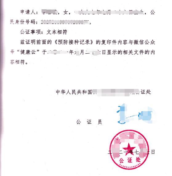 第二种:部分国家要求国内出具的新冠疫苗接种记录证明要进行翻译公证,这时就需要公证处进行公证办理,出具的公证书才会被国外认可,比如韩国使用的新冠疫苗接种证明,就需要办理文件的公证和单认证。